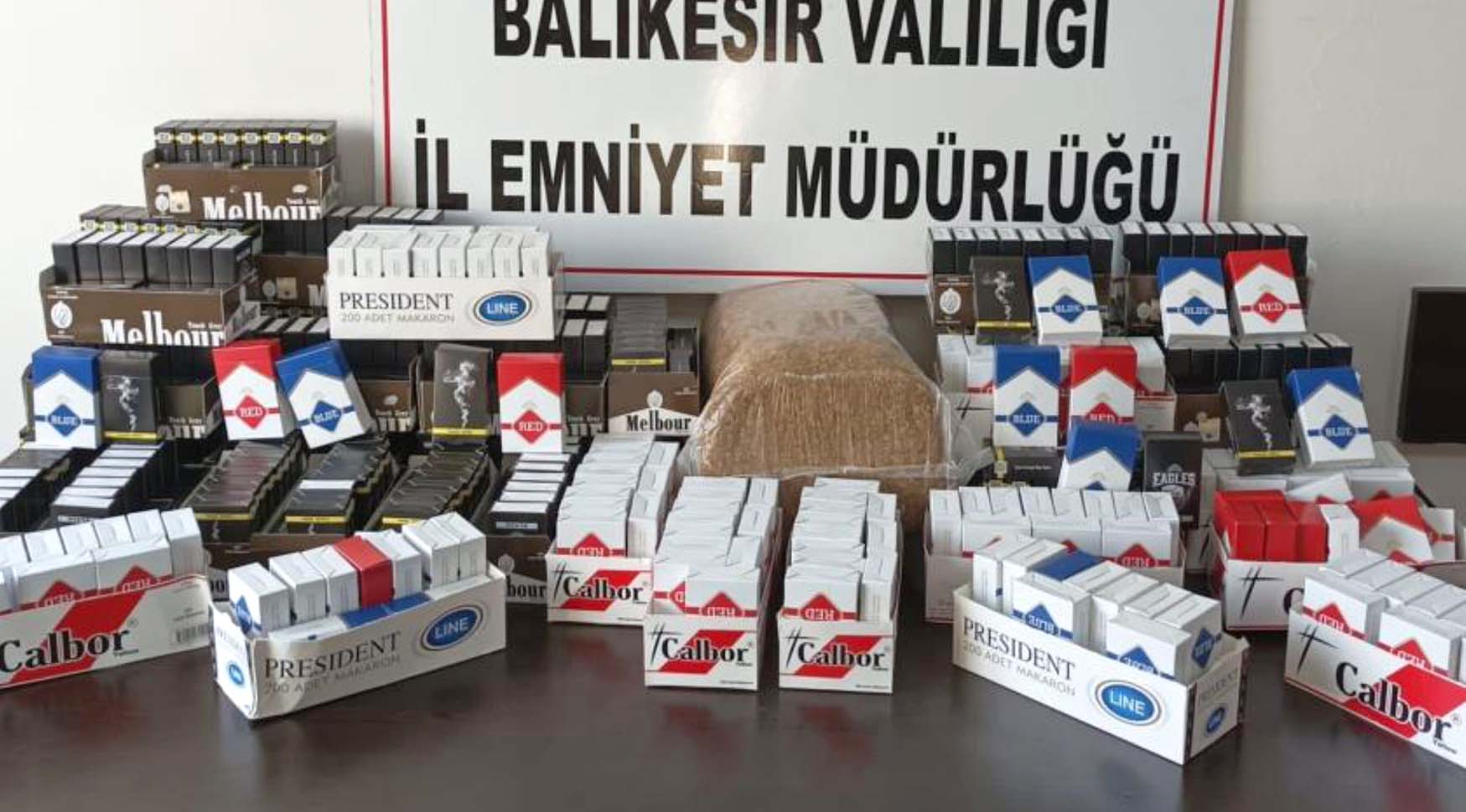 Balıkesir İl Emniyet Müdürlüğü KOM Şube Müdürlüğü görevlilerince Tütün ve Tütün mamulleri Kaçakçılığını önlemeye yönelik yapılan çalışmalarda, 1 Şüpheliye ait 2 işyerinde yapılan aramada; 22 bin 840 adet doldurulmuş sigara, 3 Adet siyah puff sigara, 15 Kilogram Kıyılmış Tütün, 3 Kilogram Nargile Tütünü, 4 adet Cinsel İçerikli Ürün ele geçirilirken, 1 şüpheli hakkında 5607 SKM suçundan işlem yapıldı.