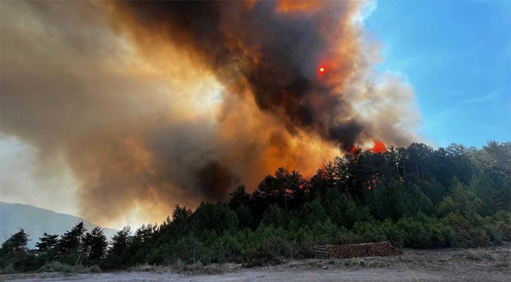 Sındırgı’ya bağlı Kürendere Mahallesi yakınlarında dağın iç kısmında başlayan yangına müdahale ediyor. Bölgede rüzgarın güçlü olmaması önemli bir etken olarak göze çarpsa da yangının seyrettiği noktaya karadan ulaşım güçlükle sağlanıyor. Zor arazi şartlarına karşı helikopterler ve uçaklar sürekli sorti yaparken, jandarma helikopteri de söndürme çalışmalarında görüntülendi. Orman ekipleri, itfaiye ekipleri ve 10 civarında hava söndürme gücü çalışmalarda yer alıyor. İHA