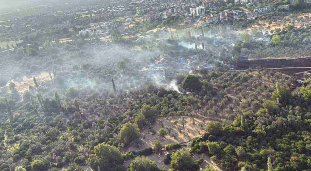 Yangın nedeniyle bölgede bulunan zeytinlik ve tarım alanlarında maddi hasar meydana gelirken, ekiplerin yoğun çabasıyla alevler kontrol altına alındı. Soğutma çalışmaları sürüyor. Yangının çıkış sebebinin belirlenmesi için inceleme başlatıldı. İHA
