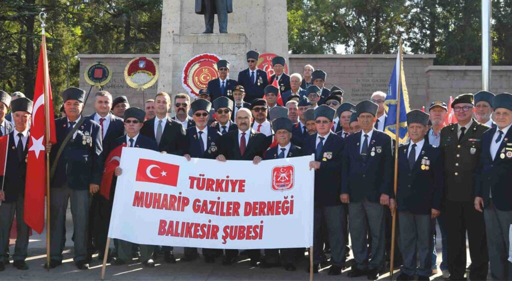 Türkiye Büyük Millet Meclisi tarafından Mustafa Kemal Atatürk’e Gazilik unvanı ile Mareşal Rütbesinin verilişinin yıldönümü dolayısıyla düzenlenen 19 Eylül Gaziler Günü kutlama programı kapsamında Atatürk Anıtına Çelenk Sunma Töreni gerçekleştirildi. Saygı Duruşu ve İstiklal Marşı’nın okunmasıyla başlayan çelenk sunma töreninde günün anlam ve önemine ilişkin konuşmayı Türkiye Muharip Gaziler Derneği Balıkesir Şubesi Başkanı Hulusi Karakuz yaptı. Mustafa Kemal Atatürk ve arkadaşlarının önderliğinde yürütülen hürriyet ve bağımsızlık mücadelesinin kıvılcımdan alev topuna dönüşerek zafere ulaştığını ifade eden Karakuz, “19 Eylül Gaziler Günü aziz vatanımızın bağımsızlığı bekası uğrunda muharebe meydanlarında canlarını ortaya koyarak savaşan fedakar, kahraman gazilerimizin şeref ve kahramanlık günüdür. Gaziler Gününü kutlamanın gurur ve heyecanı içindeyiz.” şeklinde konuştu.