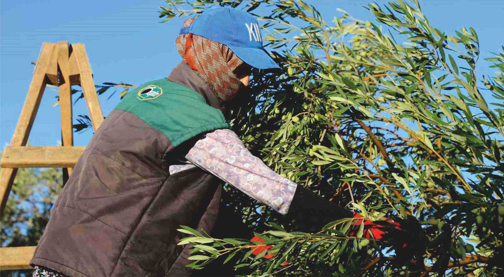 Zeytin toplayıcılarının büyük bir şevkle başladıkları hasatta, zeytinler ağaçların dallarından kadın çiftçiler tarafından elle toplandı.