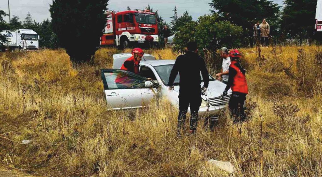 Balıkesir’de Kepsut yönüne giden otomobil yağıştan dolayı kayarak, şarampole uçtu.