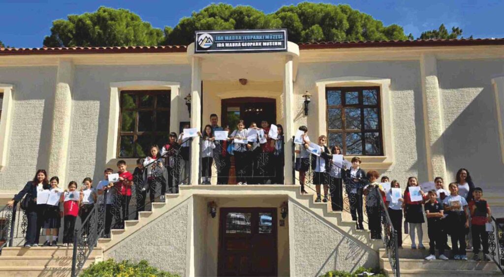 Edremit İlçesi Güre Mahallesi’nde bulunan İda Madra Jeopark Müzesi de Fen Bilimleri dersi kapsamında ilkokul öğrencilerini ağırladı. Jeolojik dönemlerden günümüze kadar gelen değerli taş ve madenlerin yanı sıra Balıkesir’in jeolojik yapısının tanıtıldığı müzeyi ziyaret eden; Karagözoğlu İlkokulu, Atatürk İlkokulu ve Girne Koleji öğrencileri, derslerini müzede işleyen öğrenciler, kayaçları görüp öğrenme imkânı buldu. Öğrenciler ayrıca beğendikleri kayaçları resmetti.