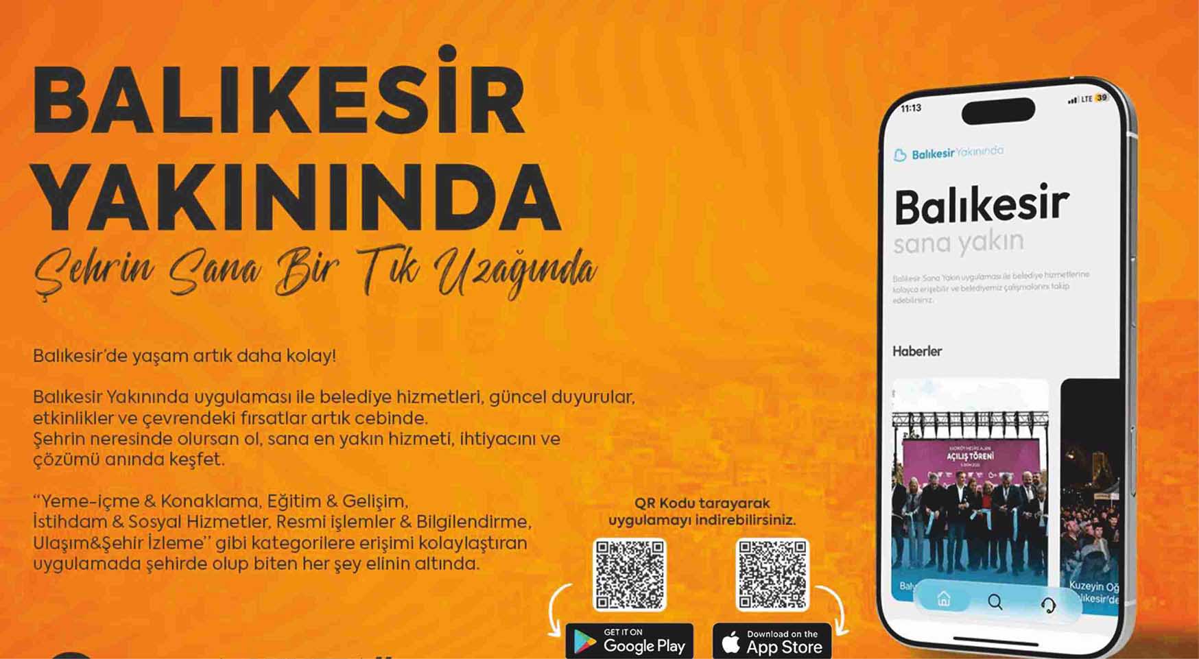 Balıkesir Büyükşehir Belediye Başkanı Ahmet Akın, belediye hizmetlerine herkesin kolaylıkla erişebilmesi için “Balıkesir Yakınında” mobil uygulamasını hayata geçirdi. “Balıkesir Yakınında” mobil uygulamasıyla tüm vatandaşlar, eğlenceden eğitime, ulaşımdan resmi hizmetlere kadar bilgi almak isteyen vatandaşlar cep telefonlarından işlemlerini rahatlıkla tek platform üzerinden yapabilecekler. Balıkesir Büyükşehir Belediyesi’nin erişilebilir mobil hizmeti olan “Balıkesir Yakınında” uygulaması tüm iOS ve Android marketlerden İOS: https://apps.apple.com/ ve Android: https://play.google.com/ linklerinden ve görseldeki QR kod okutularak da yüklenebilecek.