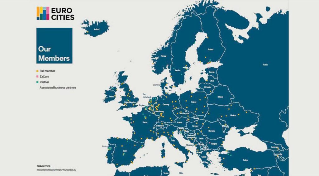 Günümüzde EUROCITIES, 38 ülkeden 200’ün üzerinde büyük şehir ve toplam 150 milyon Avrupa vatandaşını temsil eden güçlü bir yapıya ulaşmış durumda. Ağ, ekonomik kalkınma, çevre, ulaşım ve hareketlilik, sosyal politikalar, kültür ve kamu hizmetleri gibi yerel yönetimleri doğrudan etkileyen konularda Avrupa Birliği kurumlarıyla yakın iş birliği içinde çalışıyor. Avrupa’nın 2020 vizyonu doğrultusunda “Akıllı, sürdürülebilir ve kapsayıcı büyüme” hedefini benimseyen EUROCITIES, önceliklerini; iyileşme, içerme ve iklim olarak belirleyerek Avrupa vatandaşlarının günlük yaşamını etkileyen politika alanlarında aktif çalışmalar yürütüyor.