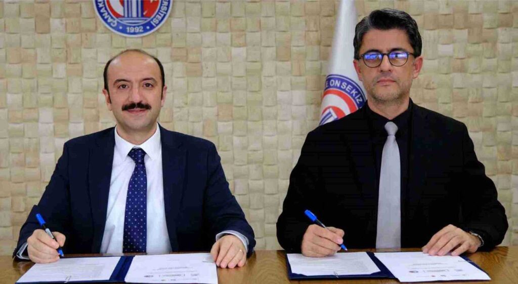“Türkiye Siber Vatan Programı İş Birliği Protokolü” imza töreni, ÇOMÜ Rektörü Prof. Dr. R. Cüneyt Erenoğlu ve GMKA Genel Sekreteri Onur Adıyaman’ın katılımlarıyla gerçekleştirildi.