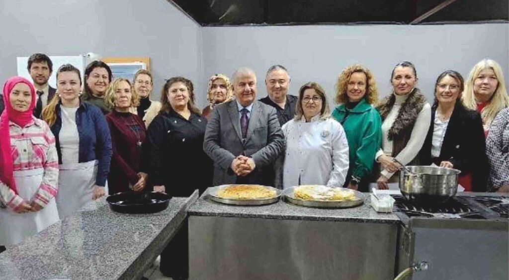 Faaliyetin ikinci bölümü mutfakta gerçekleştirildi. İl Millî Eğitim Müdürü Selehattin Kal’ın da katılımıyla öğretmenler, Balıkesir Kaymaklısının yapım süreci hakkında verilen bilgileri dinledi. Tatlının hazırlanışı, gösterim yoluyla adım adım katılımcılara aktarıldı. Uygulama sırasında öğretmenlerin soruları yanıtlanarak karşılıklı bilgi paylaşımı sağlandı.