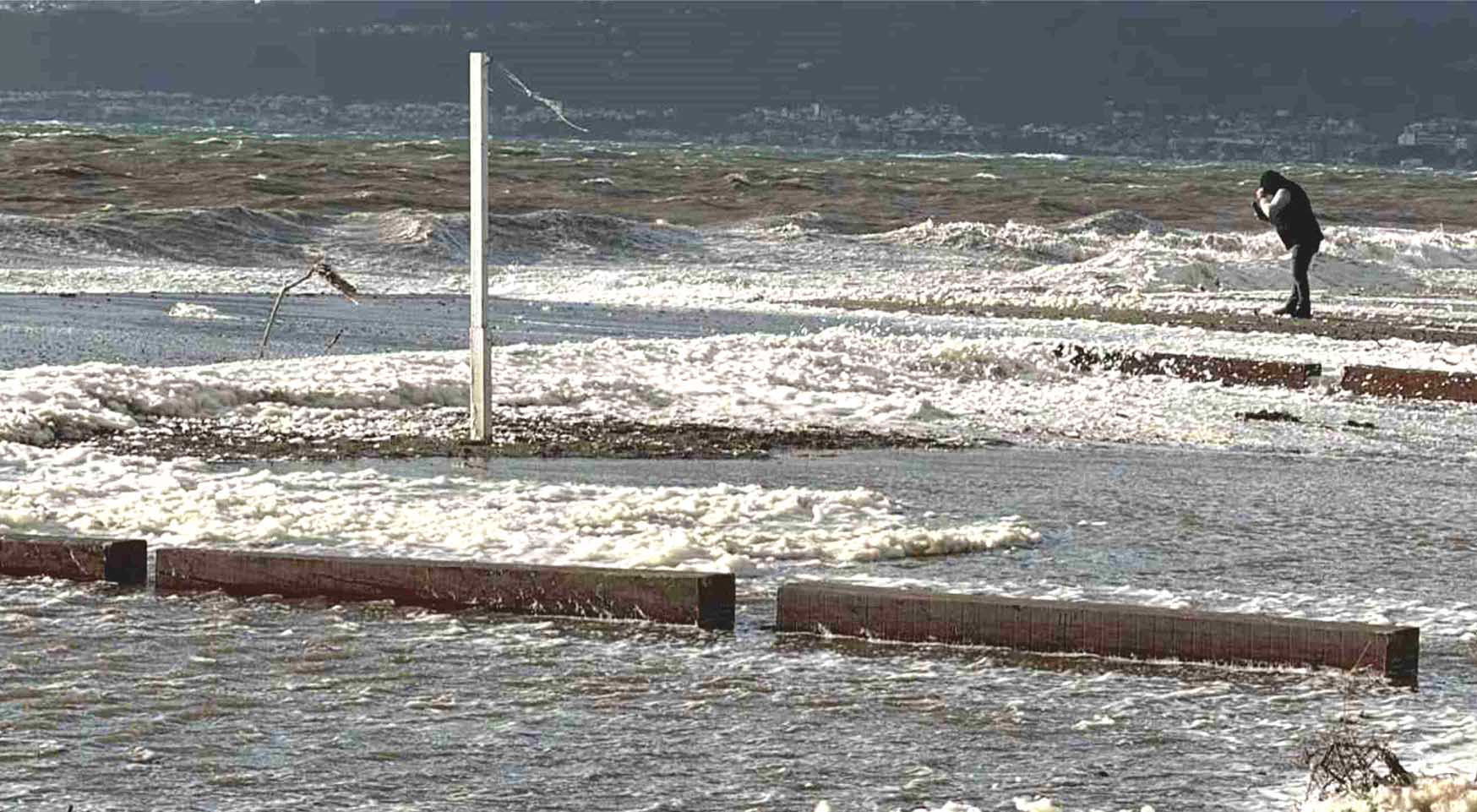 Edremit Körfezi’nde etkisini gösteren şiddetli lodos hayatı olumsuz etkilerken, Altınkum Mahallesi sahilinde ender rastlanan bir doğa olayı meydana geldi. Fırtına nedeniyle denizde oluşan dev dalgalar kıyıya vurdukça yoğun bir köpük tabakası meydana getirdi. Kilometrelerce uzanan sahil şeridi, denizden gelen köpüklerle kaplanınca ortaya kar yağışını andıran görüntüler çıktı. Sahilin beyaza büründüğünü gören vatandaşlar ise bu ilginç doğa olayını şaşkınlıkla izledi. Vatandaşlar o anları cep telefonlarıyla kaydetti. Köpüklenmenin denizdeki organik maddelerin rüzgar ve dalga etkisiyle reaksiyona girmesi sonucu oluştuğu tahmin ediliyor. İHA
