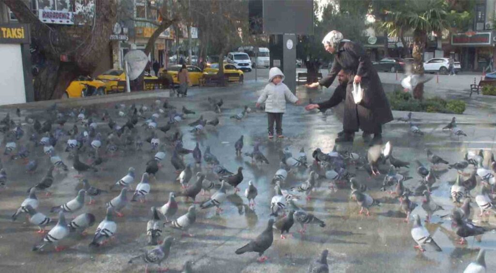 Burhaniye’de, İrfan Aşık, Cumhuriyet meydanındaki güvercinleri beslemeye başlarken, bir taraftan da onlar için bir iş yerinin çatısında yuvalar hazırladı. İrfan Aşık’ın yaklaşık 11 yıl önce 40 güvercin ile işe başladığı güvercin ailesi bu günlerde 500’ü geçti. Cumhuriyet Meydanına çocukları ile gelen vatandaşlar, güvercinleri beslerken, çocuklarda da hayvan sevgisi gelişiyor. Eşi ve çocuğu ile güvercinlere yem atan İbrahim Tekbaş, ” Hanım ve çocukla beraber dışarıya çıktık. Baktık güvercinler aç. Allah’ın dilsiz kulları bunlar. Hem oğluma da hayan sevgisini aşılamak hem doğayı tanıtmak amacıyla geldik. Hayvanları biraz besledik. Bu kış aylarında insanların kapısının önüne biraz yem bırakmalarını isterim ve cani gönülden tavsiye ederim” dedi. İHA