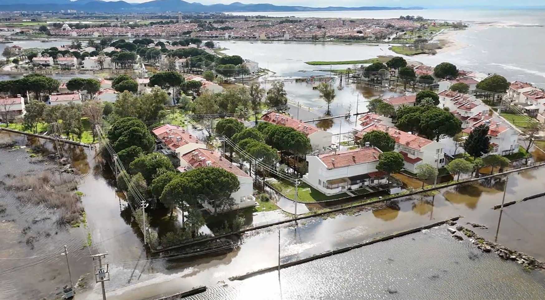 Burhaniye ilçesi Dalyan mevkiinde bulunan ve yazlık sitelerin yoğunlukta olduğu bölgede, lodos ve şiddetli yağış nedeniyle su baskınları yaşandı. İki gün boyunca etkili olan lodos fırtınası ve sağanak yağış, bölgede hayatı olumsuz etkiledi. Bölge dron ile çekilen hava görüntülerinde adeta Venedik’e benzeyen görüntüler verdi.