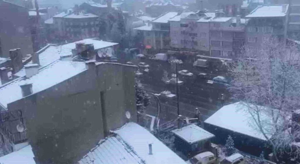 Dursunbey ilçesinde yüksek kesimlerde etkili olan kar yağışı bu kez ilçe merkezinde etkili oldu.