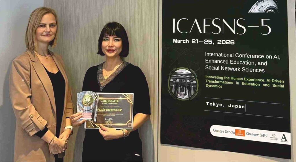 Tokyo’da gerçekleştirilen ve yapay zekâ, eğitim ve sosyal bilimlerin kesişimine odaklanan uluslararası konferansta sunulan “An AI-Driven Model Proposal for Department-Based Promotion Processes in Human Resource Management” başlıklı çalışma, alanında özgün yaklaşımı ve bilimsel katkısıyla dikkat çekti. İnsan kaynakları yönetiminde departman bazlı terfi süreçlerine yapay zekâ destekli bir model öneren çalışma, en iyi bildiri “Best Paper” ödülüne değer görüldü. Çalışması ve elde edilen başarı hakkında bilgi veren Prof. Dr. Pelin Vardarlıer, yapay zekâ temelli modellerin daha adil, şeffaf ve veriye dayalı karar alma süreçlerine önemli katkılar sunduğunu belirtirken, Balıkesir Üniversitesini ve ülkemizi uluslararası bir platformda başarıyla temsil etmekten gurur duyduğunu ifade etti. İHA