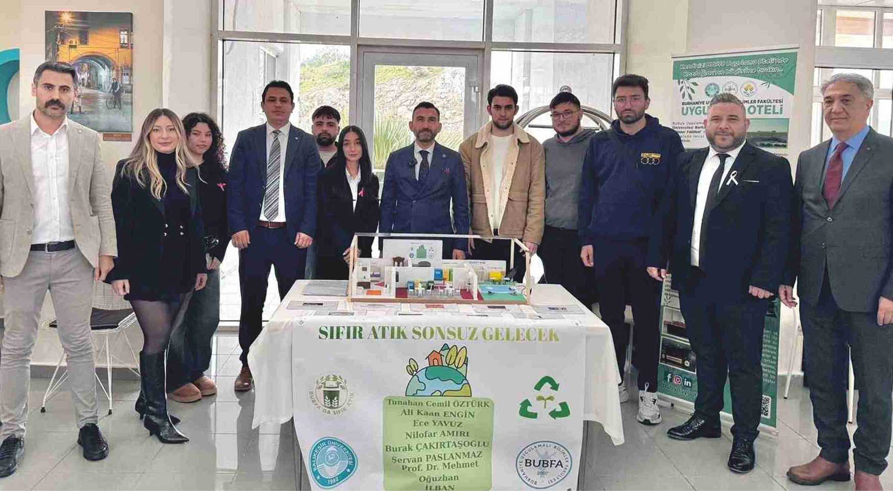 “Atıktan tasarıma, israftan ilhama”mottosuyla hayata geçirilen proje, atık kumaşların geri dönüşümüne dikkat çekmeyi, kumaş israfını azaltmayı ve öğrencilerde çevresel farkındalık oluşturmayı hedefledi. Proje kapsamında atık kumaşlar değerlendirilerek el emeği ve terzi desteğiyle çeşitli aksesuarlar üretildi. Öğrencilerin aktif katılımıyla yürütülen çalışmada, atık malzemelerin yeniden tasarlanarak kullanılabilir ve estetik ürünlere dönüştürülmesi sağlandı. Bu süreçte sürdürülebilir üretim anlayışı ön plana çıkarılırken, geri dönüşümün ekonomik ve çevresel katkılarına da vurgu yapıldı. Gerçekleştirilen etkinliğe, Burhaniye Uygulamalı Bilimler Fakültesi Dekanı Prof. Dr. Mehmet Oğuzhan İlban, Fakülte Dekan Yardımcıları Dr. Öğr. Üyesi Fatih Çolakoğlu ve Dr. Öğr. Üyesi Özkan Demir, Uygulamalı Bilimler Fakültesi Öğretim Elemanı Arş. Gör. Setenay Melek Yurttabir, BUBYO Otel Müdürü Nurettin Büyükbaş ve Fakülte Sekreteri Ahmet Özcan katılım sağladı.Proje, Uluslararası Ticaret bölümü 3. sınıf öğrencileri Büşra Taş, İrem Demir, Azra Ece Şahin, Melike Duran, Zhuldyz Saduyeva, İdil Bayrak ve Mina Çınar tarafından yürütüldü. Etkinlik sonunda Burhaniye Uygulamalı Bilimler Fakültesi Dekanı Prof. Dr. Mehmet Oğuzhan İlban, sürdürülebilirlik temelli projelerin önemine dikkat çekerek, “Bu proje ile öğrencilerimizin çevre bilinci ve sosyal sorumluluk farkındalığını artırmayı amaçladık. Atık kumaşların yeniden tasarlanarak değerli ürünlere dönüştürülmesi hem çevreye hem de uygulamalı eğitime önemli katkılar sunmaktadır. Emeği geçen tüm öğrencilerimizi ve danışman akademisyenlerimizi tebrik ediyorum” diye konuştu. İHA