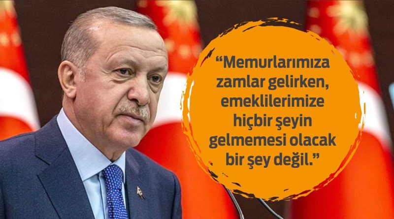 Cumhurbaşkanı Recep Tayyip Erdoğan, “Memurlarımıza zamlar gelirken, emeklilerimize hiçbir şeyin gelmemesi olacak bir şey değil. Onları da
