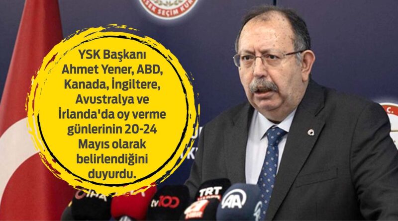 Read MoreYüksek Seçim Kurulu (YSK) Başkanı Ahmet Yener, bugün gerçekleştirilen toplantıda ABD, Kanada, İngiltere, Avustralya ve İrlanda’da oy