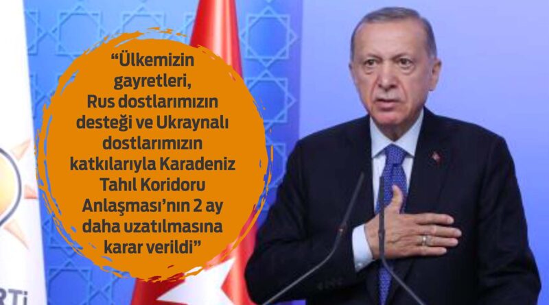 Read MoreCumhurbaşkanı Recep Tayyip Erdoğan, “Ülkemizin gayretleri, Rus dostlarımızın desteği ve Ukraynalı dostlarımızın katkılarıyla Karadeniz Tahıl Koridoru Anlaşması’nın